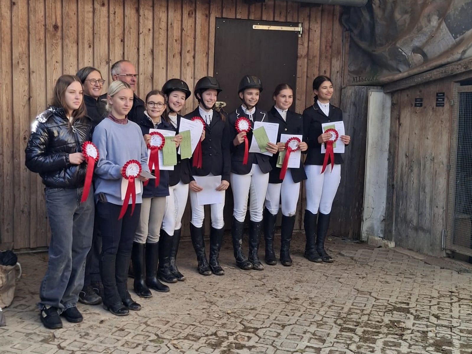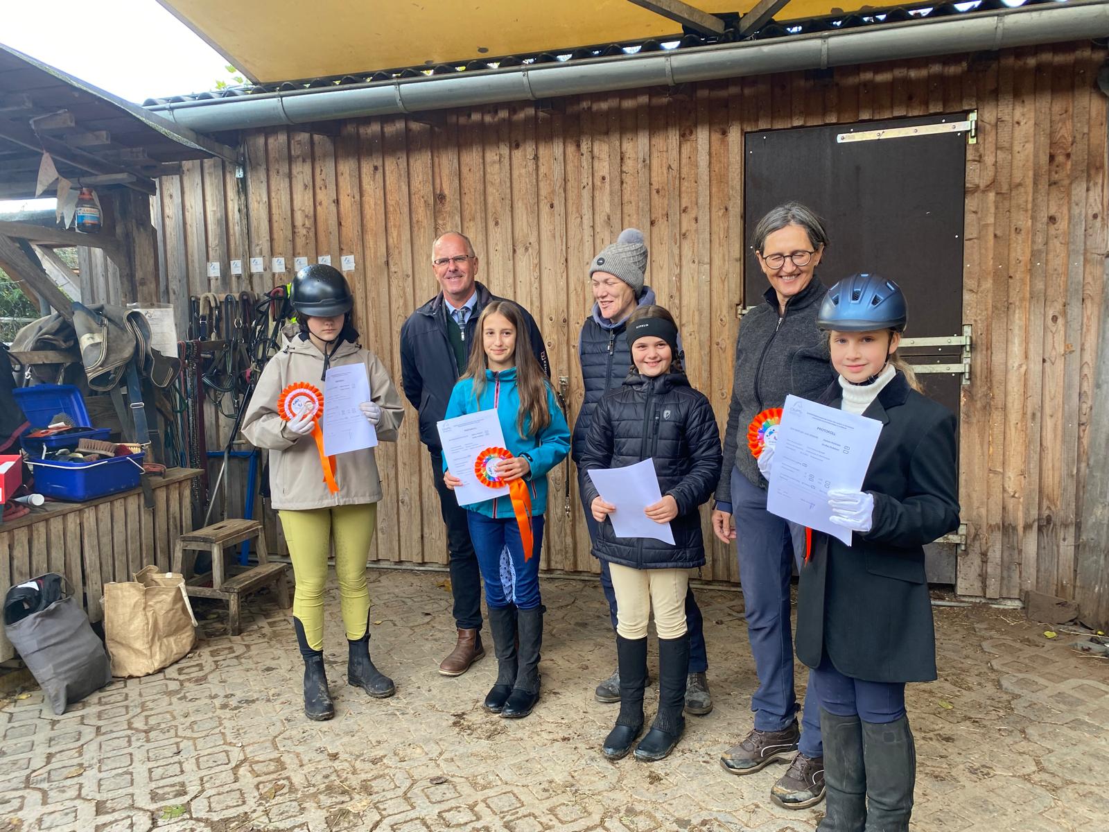 Richter Peter Schorn durfte je 2 Abzeichen fürs Kleine und Große Hufeisen, 6 Reiterpässe und eine Reiternadel überreichen – einer Teilnehmerin fehlte nur noch die Theorieprüfung, die sie bei uns absolvierte.
